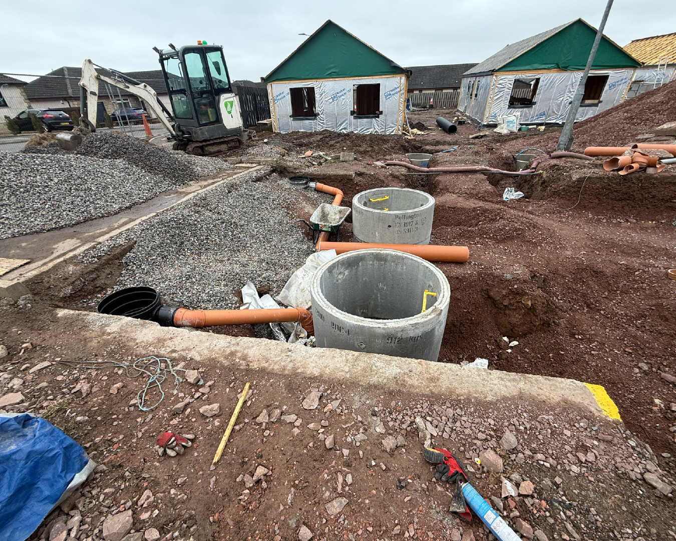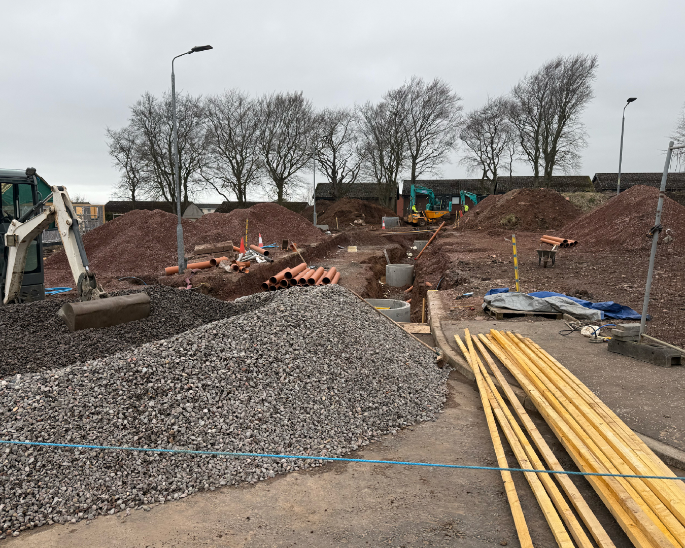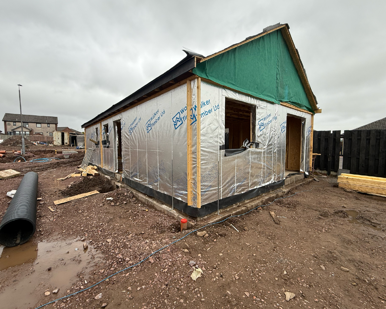The development site comprises 12 detached 3-bed bungalows, in the small picturesque village of Carnwath.