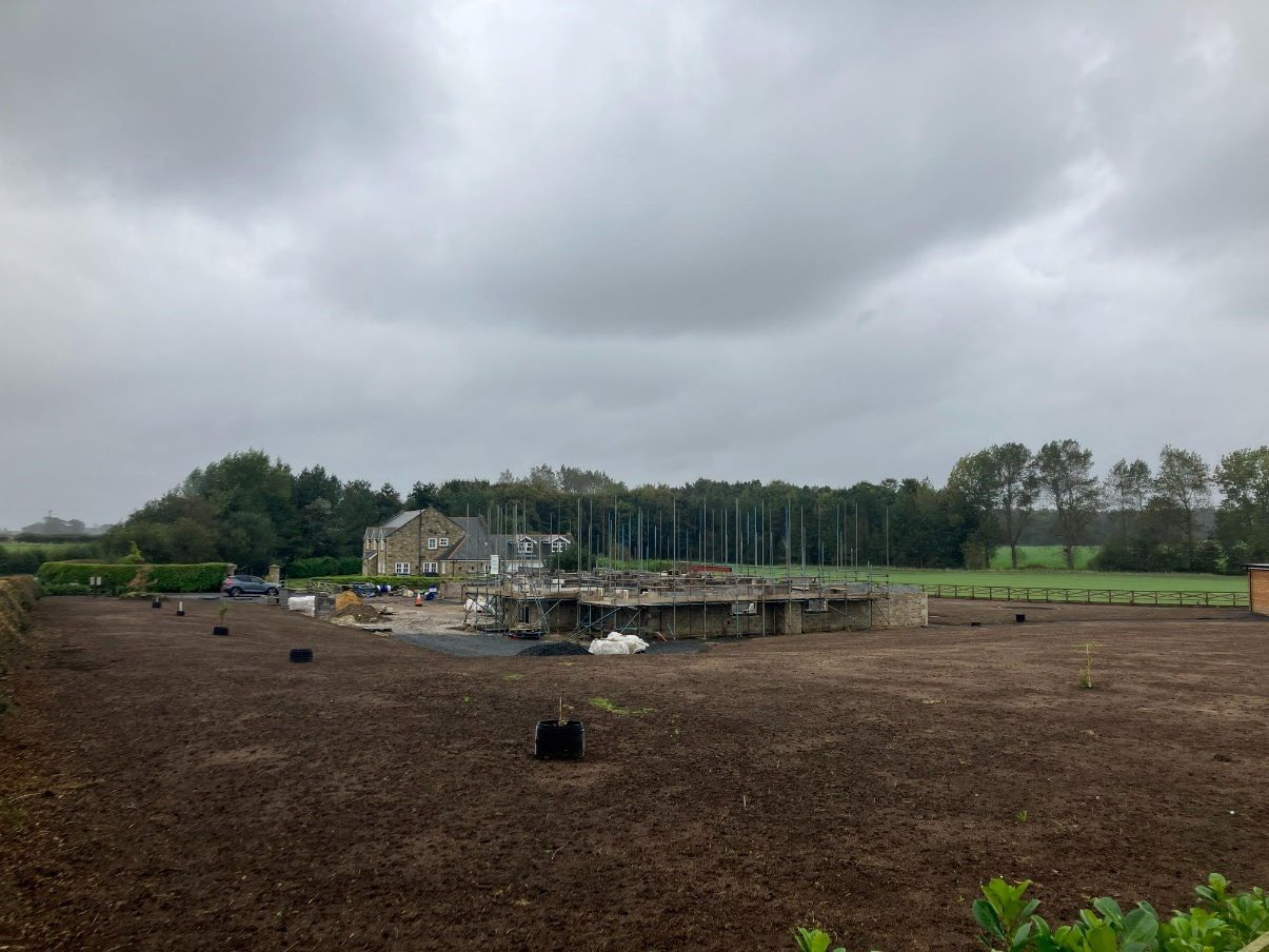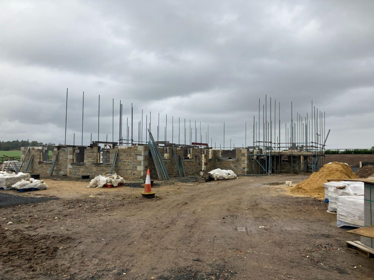 At the time of application, the build had reached the superstructure stage, with foundations, drainage, and a sewage treatment plant already installed, inspected, and approved by Building Control.